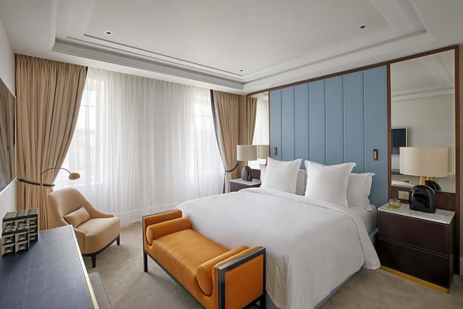 This Deluxe room features a king-size bed, mini refrigerator and bar and a Nespresso machine. A 55-inch flat-screen TV and iPad are available for guests. The marble private bathroom has a walk-in shower and deluxe toiletries. Certain rooms have a walk-in closet.